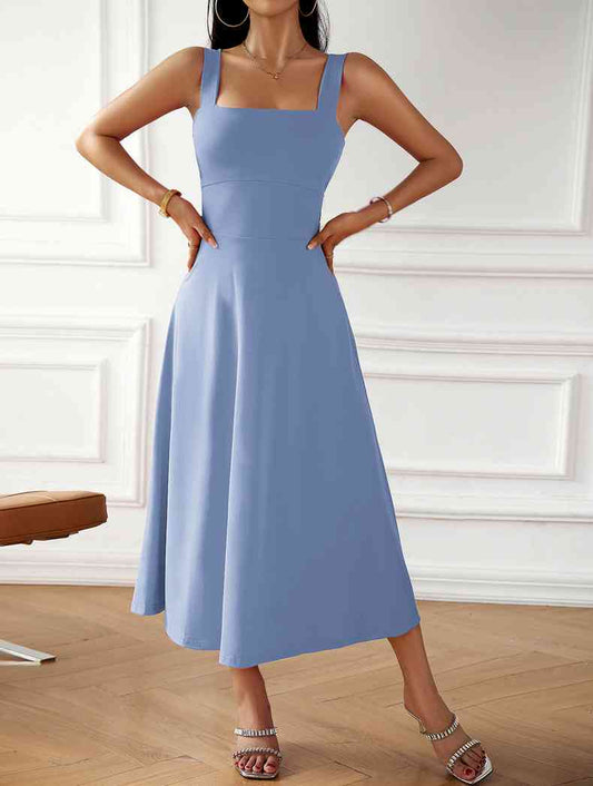 Léa Élégante Robe Midi à Encolure Carrée et Nœud au Dos