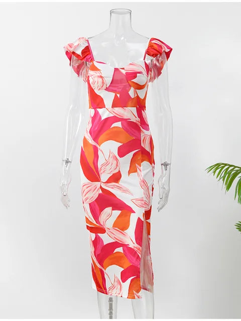 Eleganse og dristighet møtes i denne Kvinnekjolen med innsvingt passform - Hjerteformet hals - Ermeløs - Strukturerte skuldre - Ozarvo-splitten på siden. Fremhev silhuetten din med dens innsvingte snitt, flatterende hjerteformede hals, moderne strukturerte skuldre og forførende sidesplitt. Perfekt for alle dine spesielle anledninger!
